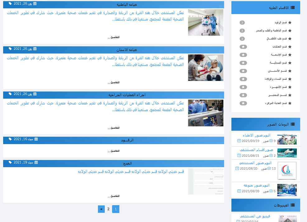 - صفحات خاصة بالتعريف بخدمات واقسام المجمع الطبي.
